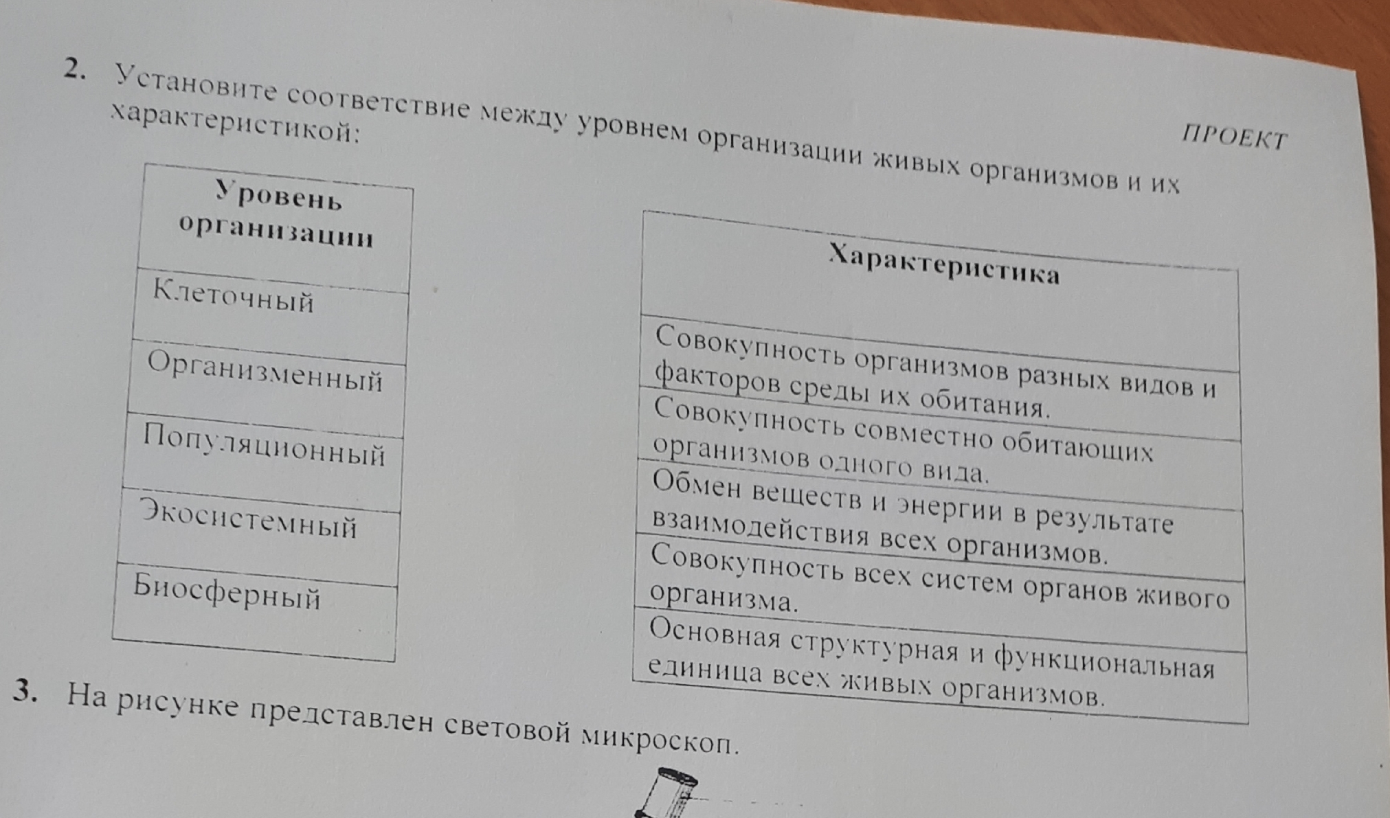 Установите соответствия между уровнем организации живых организмов и их характеристикой