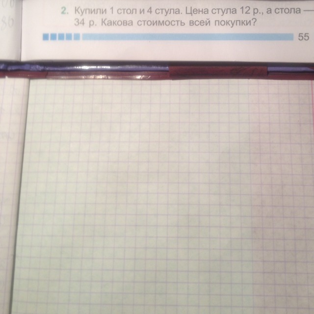 1)12•4=48(р.)-стоят 4 стула. 2)48+34=82(р.)-стоимость всей покупки