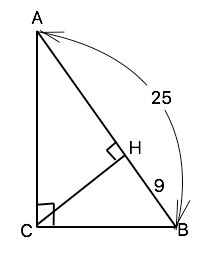 В треугольнике ABC угол C-прямой,CH-высота,AB=25 см,BH=9 см.Найдите:CH,AC,BC