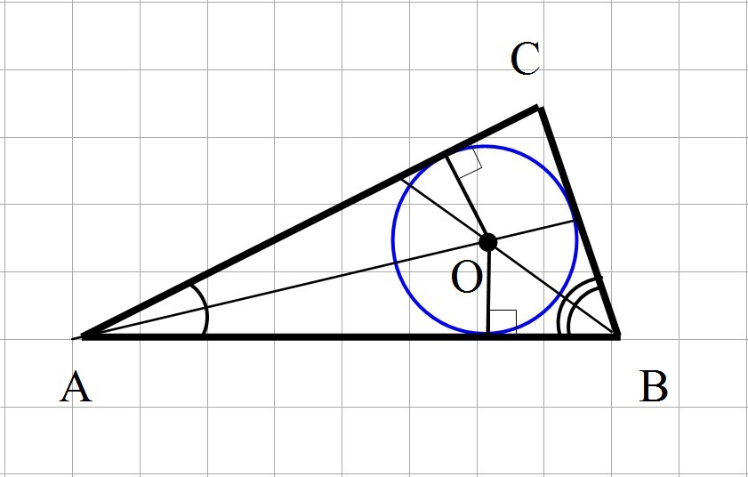 б). Точка, равноудаленная от сторон треугольника является центром вписанной окружности и лежит на пересечении биссектрис углов треугольника.