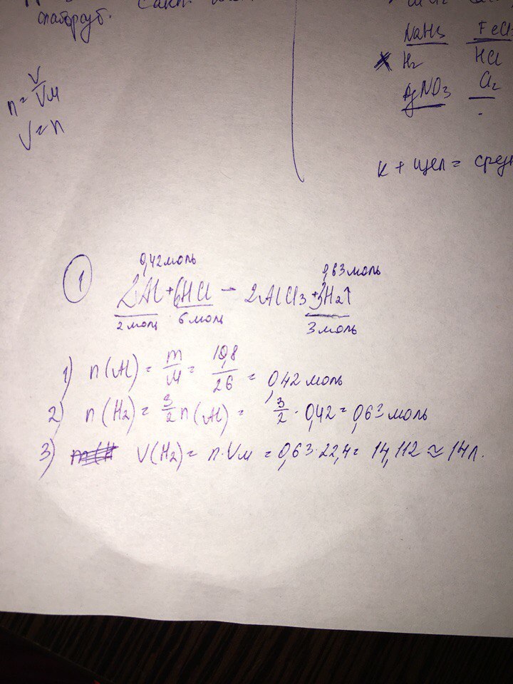 Определите объем водорода (н.у.), выделяющегося в результате реакции между соляной кислотой и 10,8г алюминия