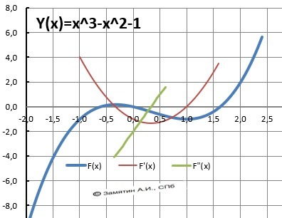 Y"(x) = 6*x - 2 = 6*(x - 1/3) = 0