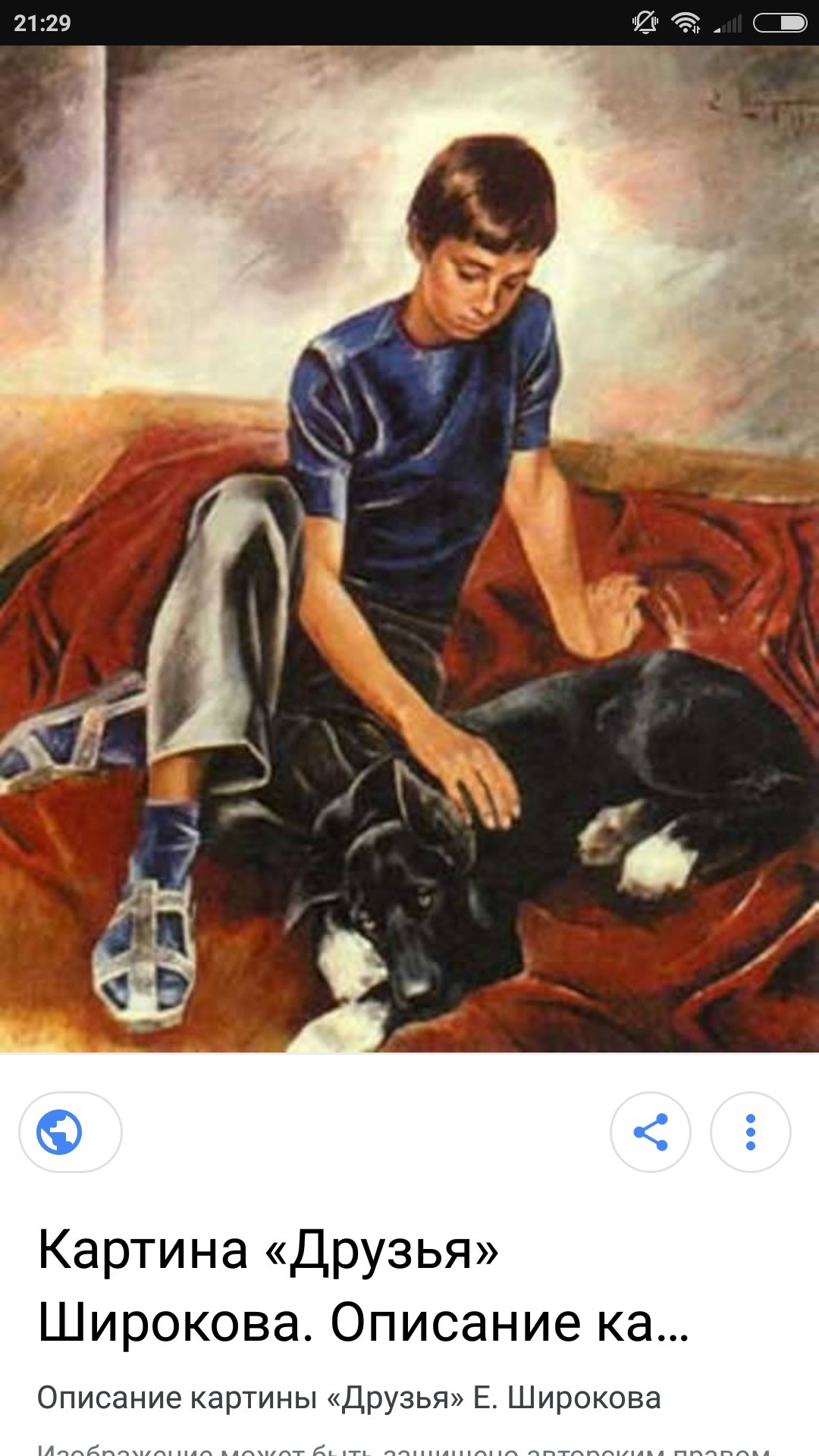 Мне понравилась эта картина тем ,что она показывает эмоции мальчика и собаки. А не понравилась тем,что автор изобразил ее в не ярких цветах.