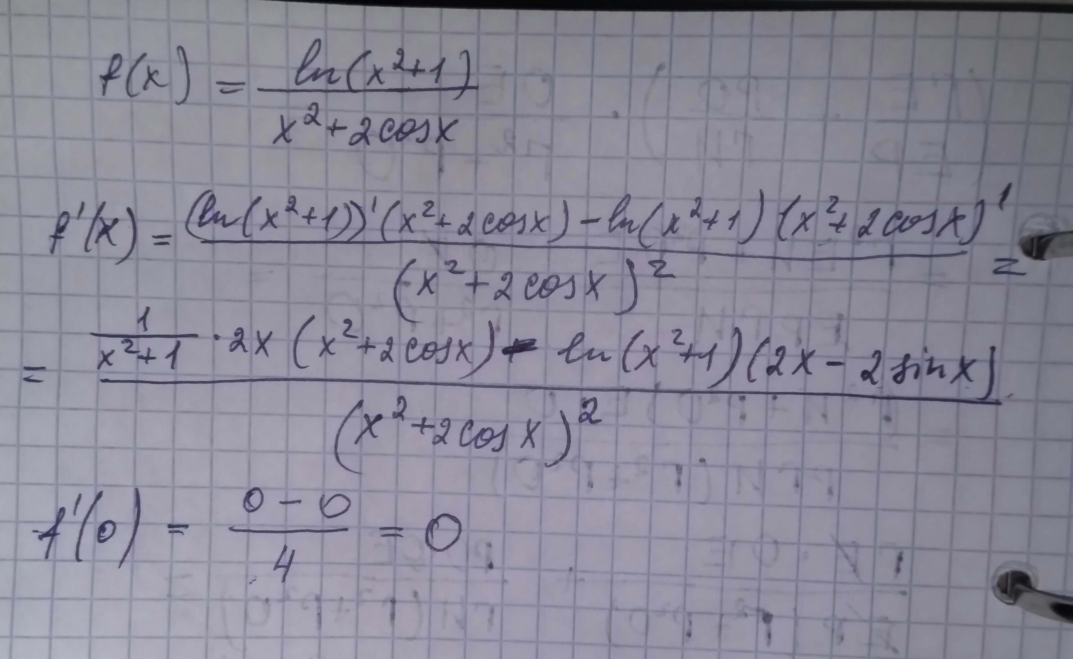 f(x)=(ln(x^2+1))/(x^2+2cosx)