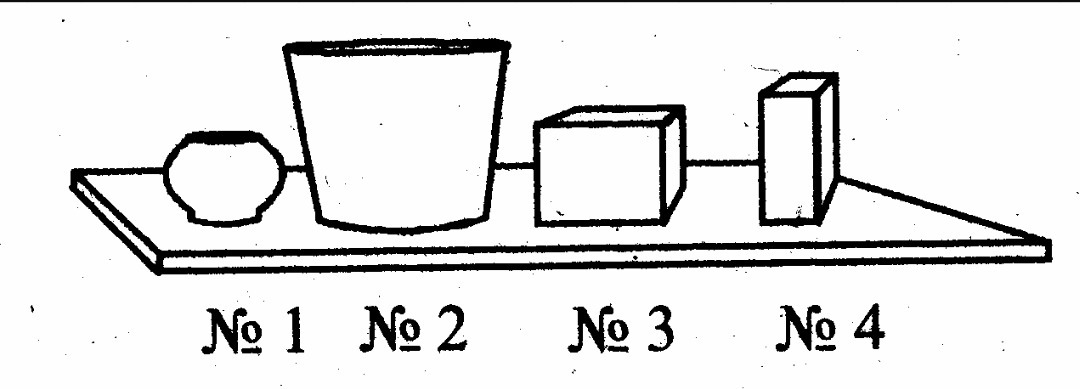 . На полке стоят тела равной массы. Какое из них производит на нее наименьшее давление?