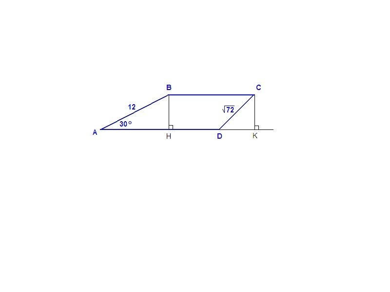 ΔАВН: ∠АНВ = 90°, ∠ВАН = 30°, АВ = 12, ⇒