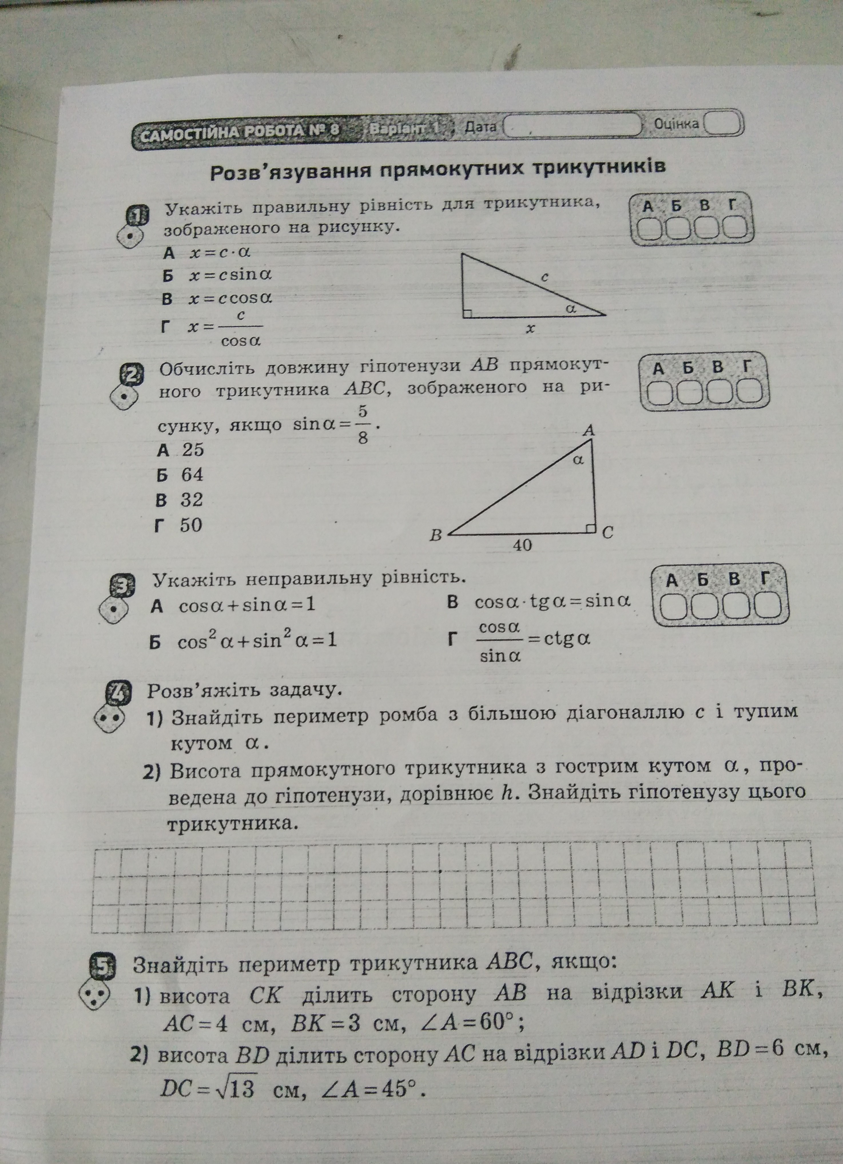 1.cosα=x÷c=>x=c×cosα => Ответ:В.