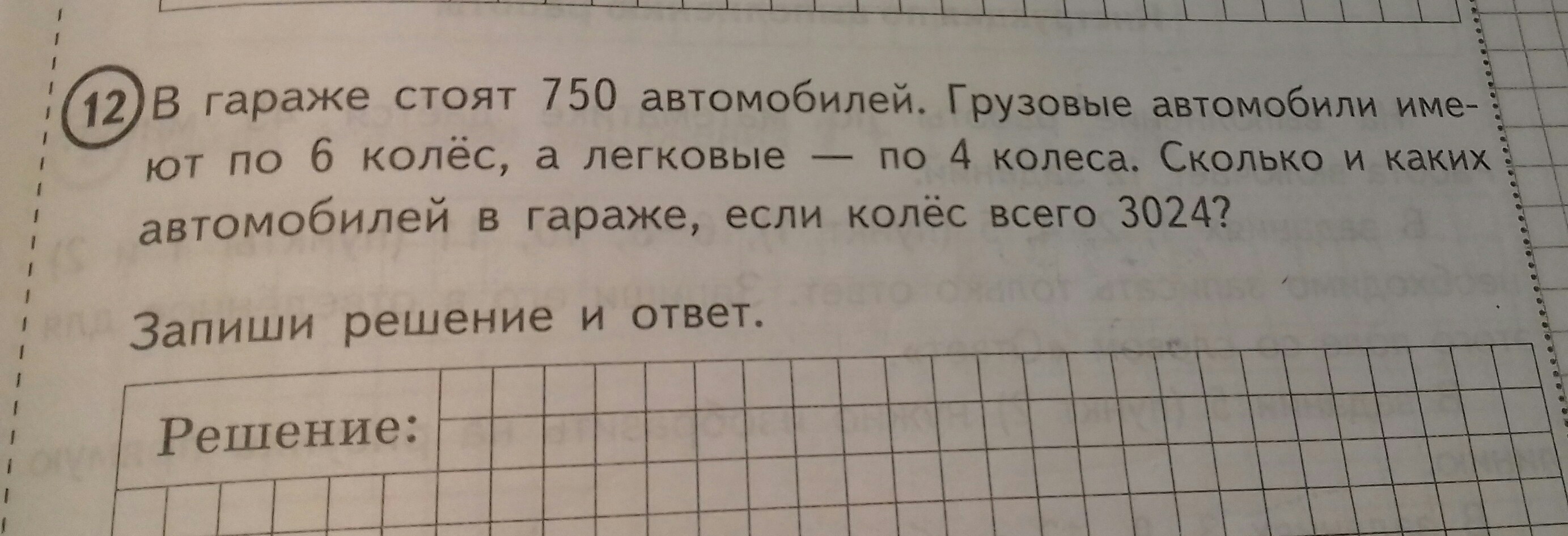 2) 3 024-3 000=24 (к.) - лишнее количество колёс (сколько колёс имеется потому, что среди автомобилей есть грузовые).