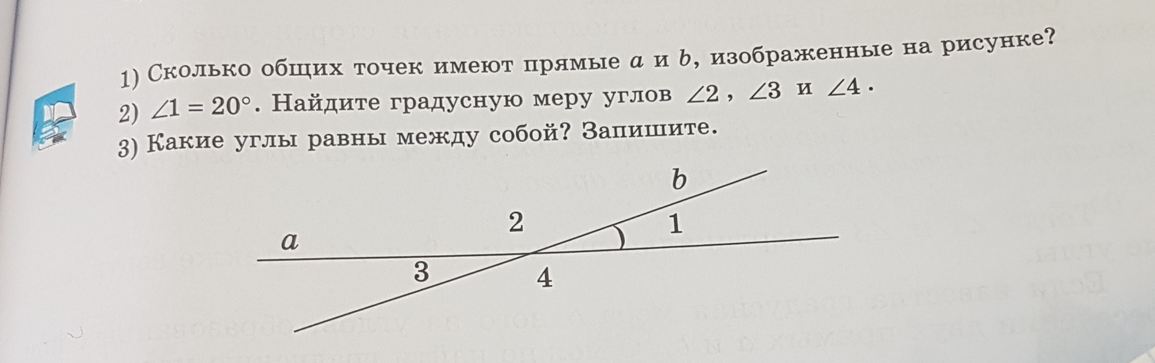 1) прямые а и b имеют одну общую точку