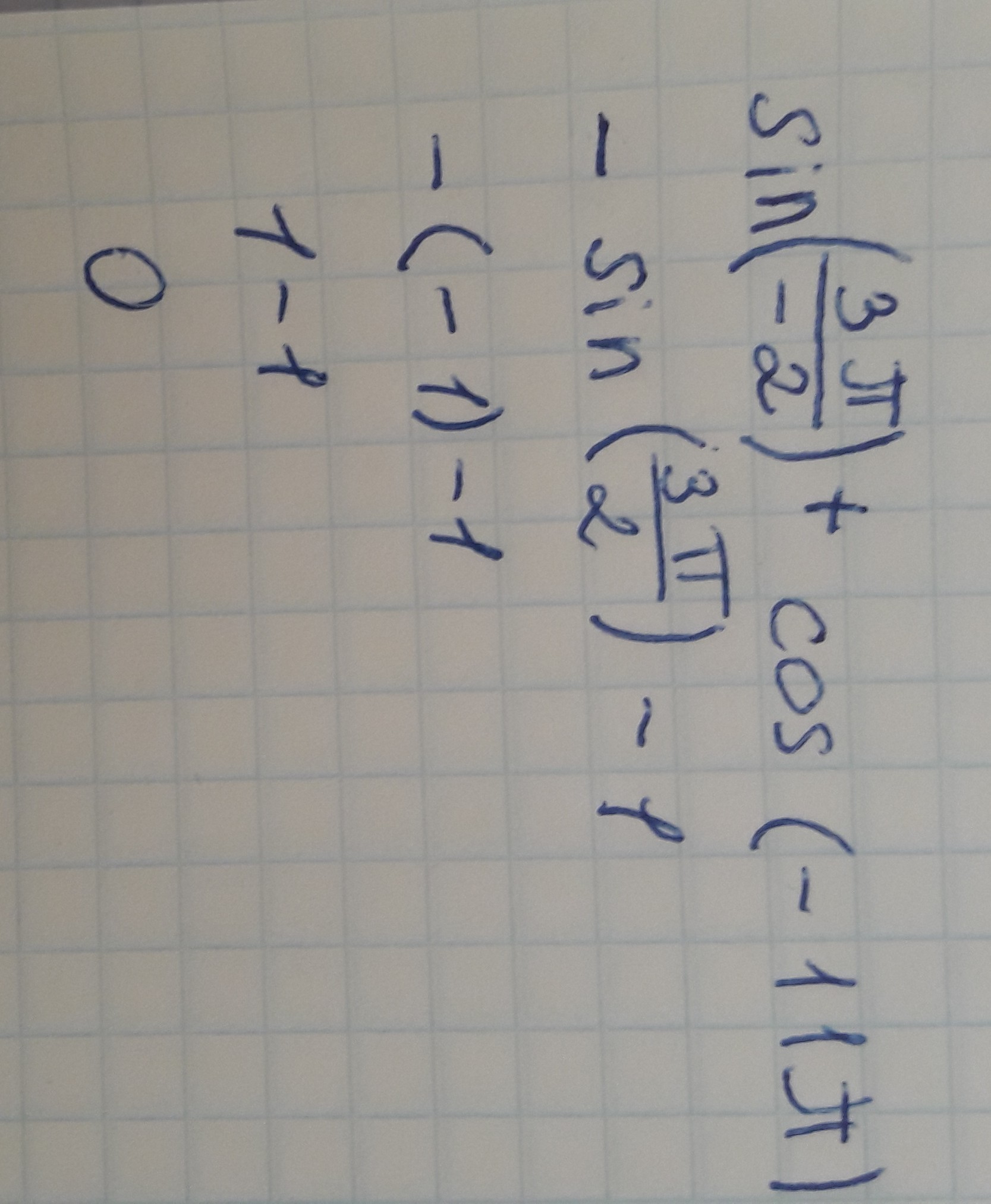 sin(-3π/2)+cos(-11π)=-sin(3π/2)+cos(11π)=-(-1)+cosπ=1-1=0