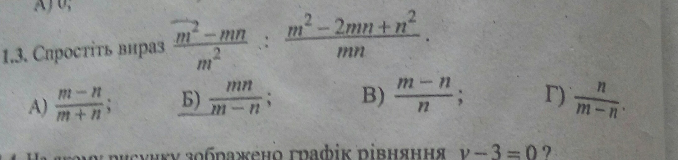 спростіть вираз m²-mn/m²:m²-2mn+n²/mn