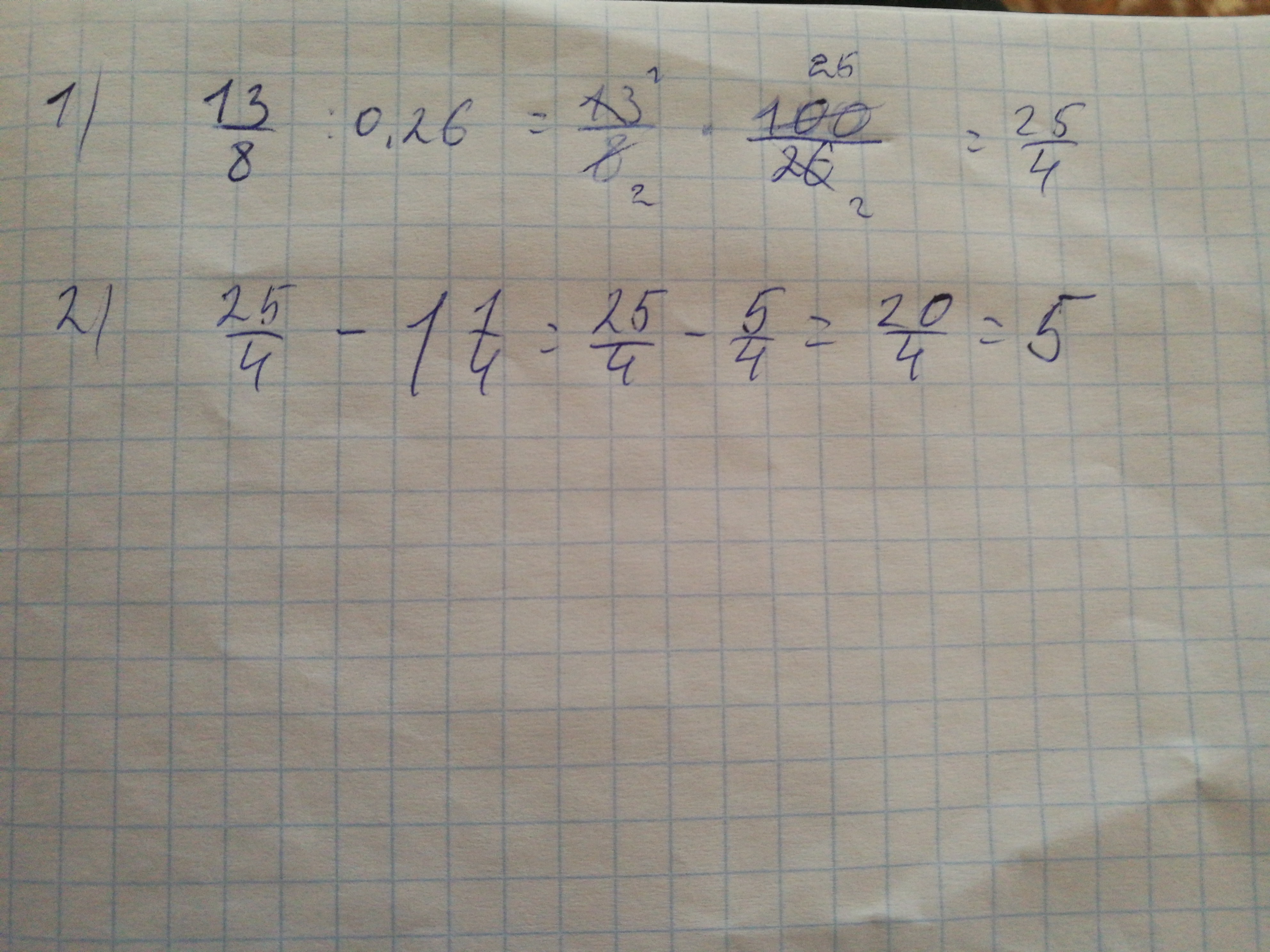 1) 13/8:0.26=1.625:0.26=6.25