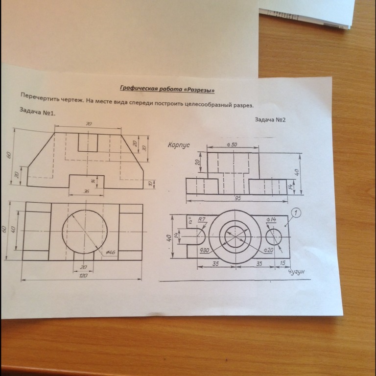 Графическая работа <<Разрезы>> перечертить чертёжника месте вида спереди построить целесообразный разрез