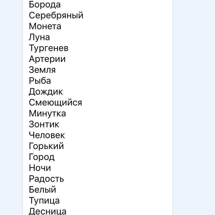 Огненная борода, серебряный дождь, драгоценная монета, сияющая луна, величайший Тургенев, родная земля, золотая рыба, бегущий дождик, смеющееся солнце, минутка внимания, радужный зонтик, холодный человек, горькое чувство, ночной город, белые ночи, злая радость, белая зависть, прекрасная десница