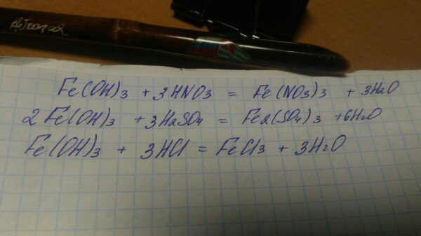 напишите уравнения реакций между гидроксидом железа 3 и следующими веществами а) азотной кислотой б) серной кислотой в) соляной кислотой