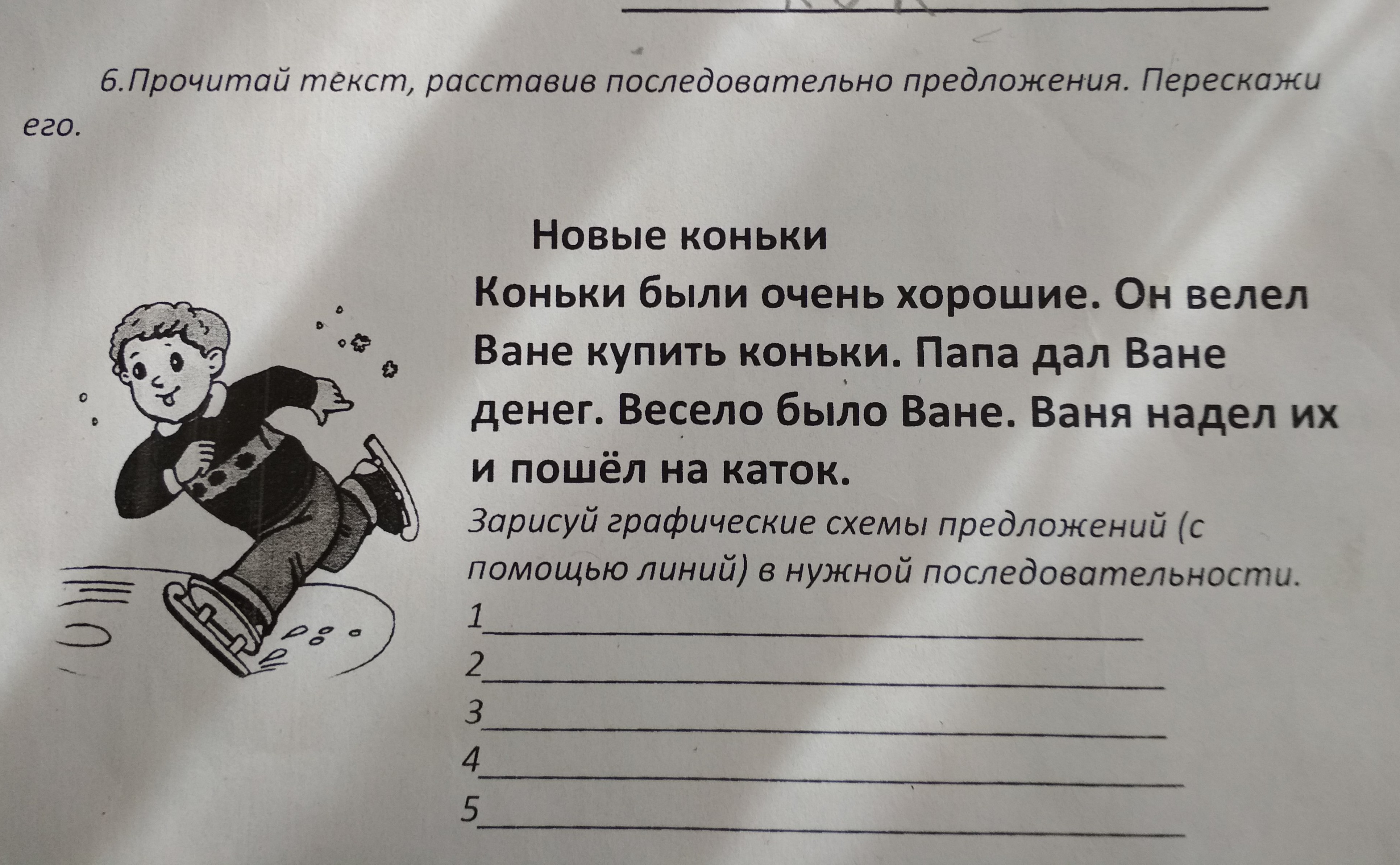 Папа дал денег Ване. Он велел Ване купить коньки. Ваня надел их и пошёл на каток. Коньки были очень хорошие. Весело было Ване.