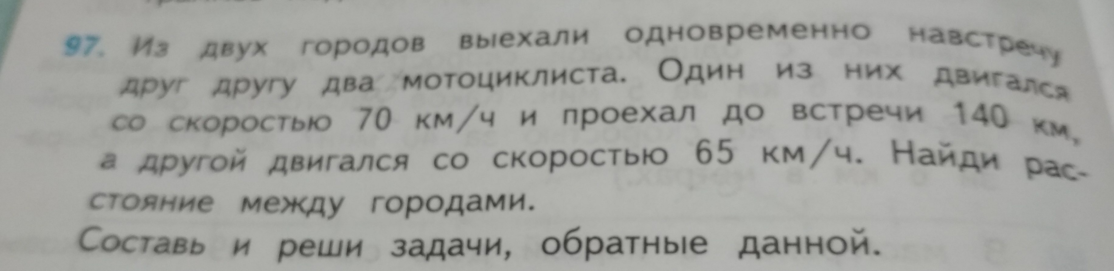 Из двух городом , расстояние между которыми 270 км, выехали одновременно навстречу друг другу два мотоциклиста. Один ехал со скоростью 70 км/ч и проехал до встречи 140 км. Найди скорость второго.