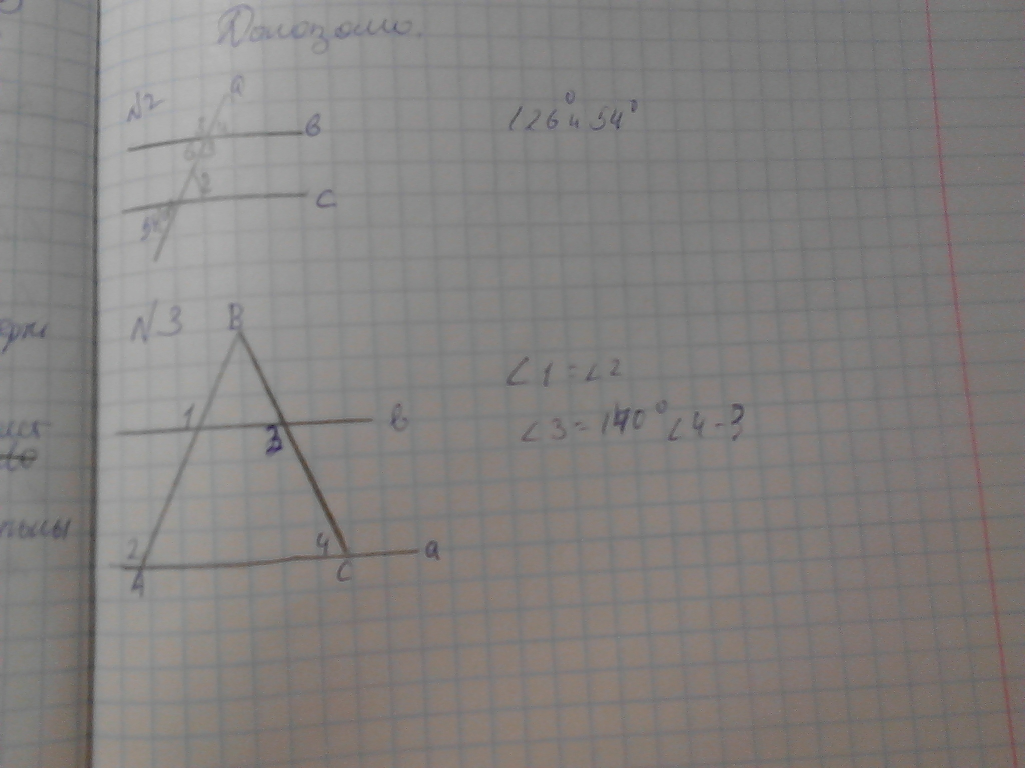 Угол 1= углу 2 ;угол 3= 140 ; угол 4 = углу 3 (как внутренние односторонние)