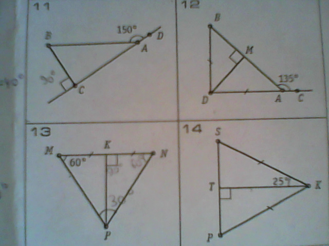 8. Внешний угол треугольника равен сумме двух других углов, не смежных с ним, значит, C= 130-60=70, MAC=180-(60+70)=50(сумма всех углов треугольника равна 180)