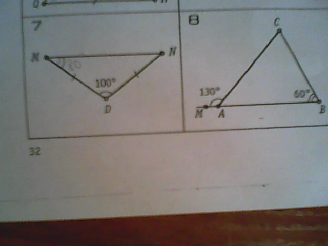 7. Если угол M=80, а стороны MD=ND, то N=80, так как треугольник равнобедренный