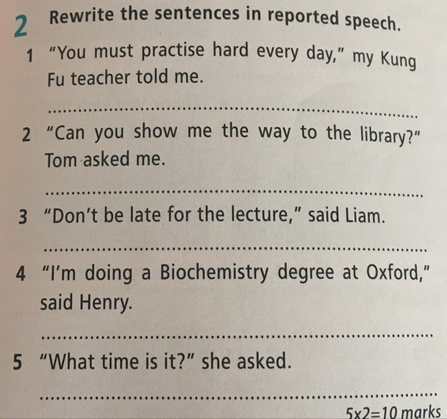 1. My Kung Fu teacher told me that I had to practice hard every day.
