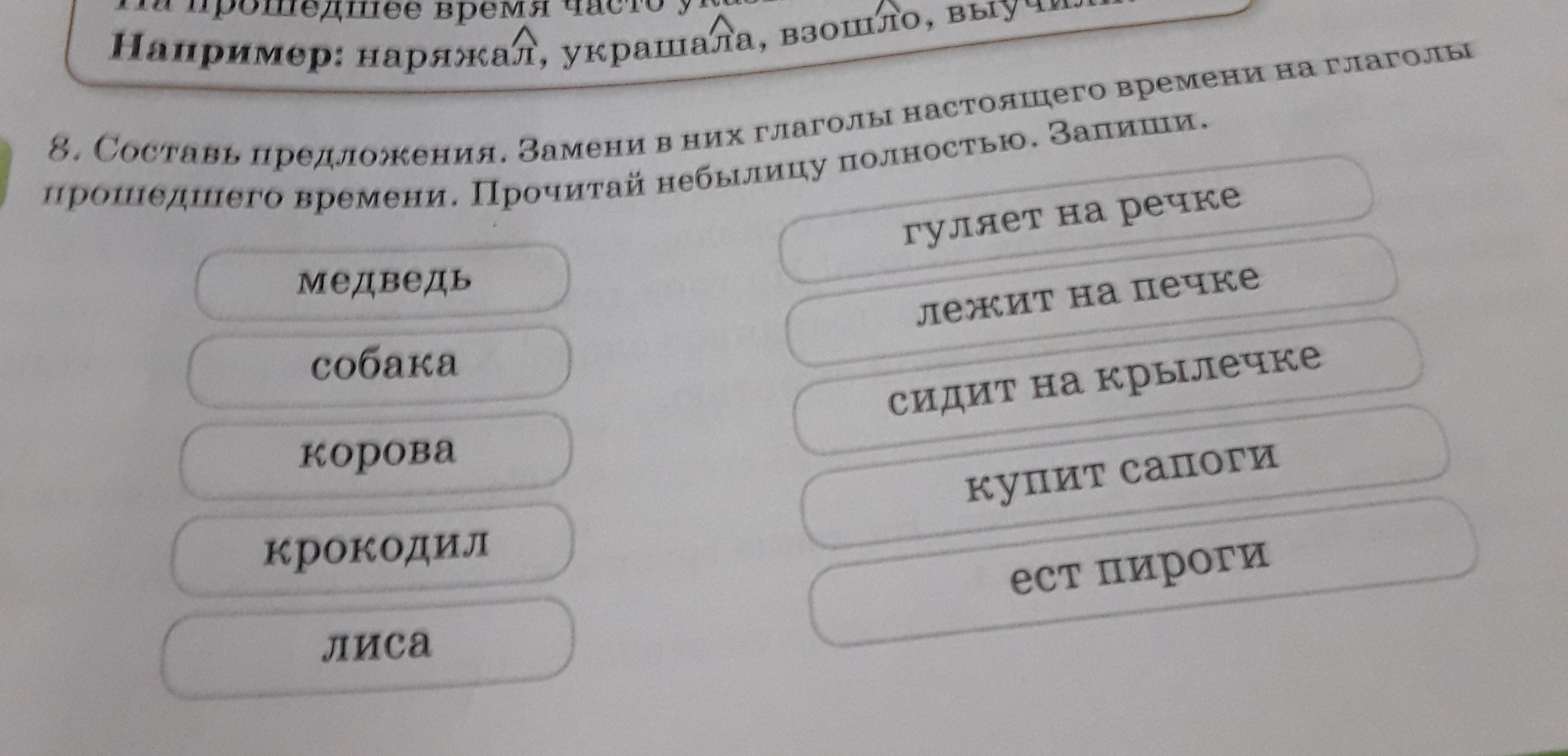 составь предложения заменяя в них глаголы настоящего времени на глаголы прошедшего времени прочитай небылицу полностью запиши