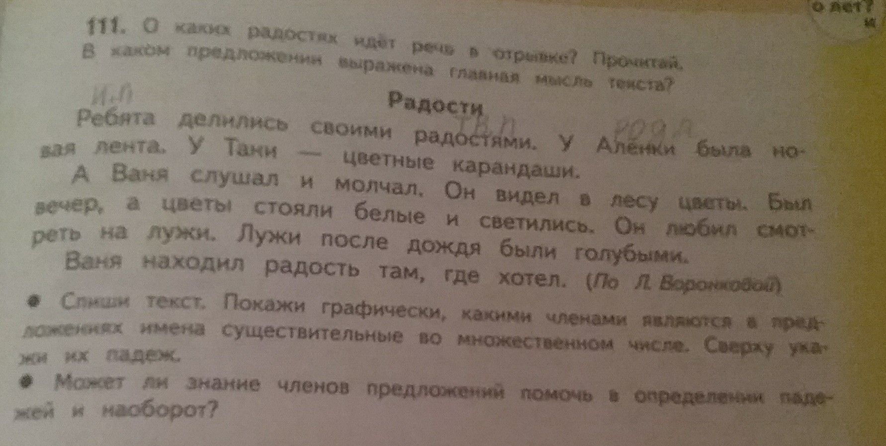 Главная мысль текста: Ваня находил радость там,где хотел.Знаешь почему это главное предложение?А оно же называется "Радости"вот и поэтому.