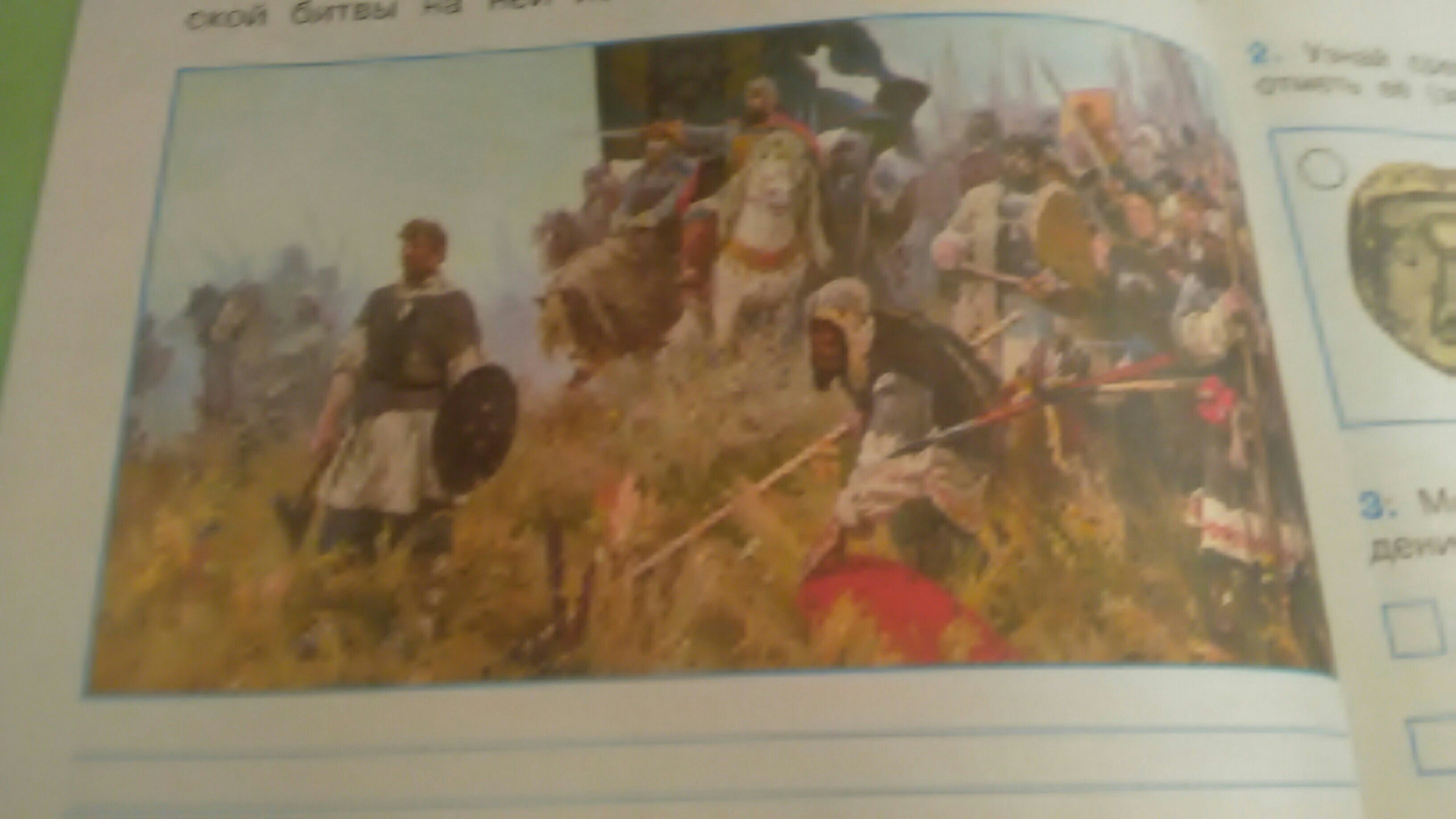 Рассмотри картину. Опиши , какой момент Куликовской битвы на ней изображён. Плиаз ответьте