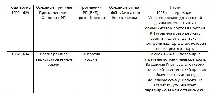 Заполните таблицу "Речь Посполитая в войнах и конфликтах первой половины 17 в." (Помогите)
