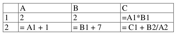 Вопрос 12. Дан фрагмент электронной таблицы. Какое значение получится в ячейке C2 после выполнения всех вычислений? *