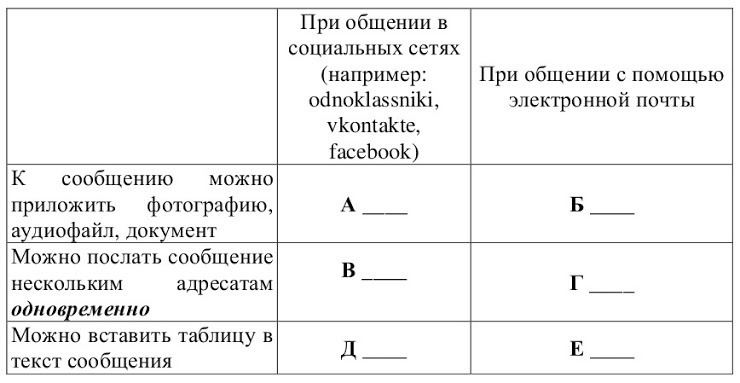 Вопрос 16. Проанализируйте следующую таблицу. Для каждой ячейки, обозначенной буквой, выберите цифру 1 в случае, если данная возможность присутствует, или цифру 0, если данная возможность отсутствует. Укажите в ответе последовательность цифр, в которой первая цифра соответствует позиции А, вторая – позиции Б, третья – позиции В (и т.д.). Между цифрами ставить запятые или другие символы не следует.