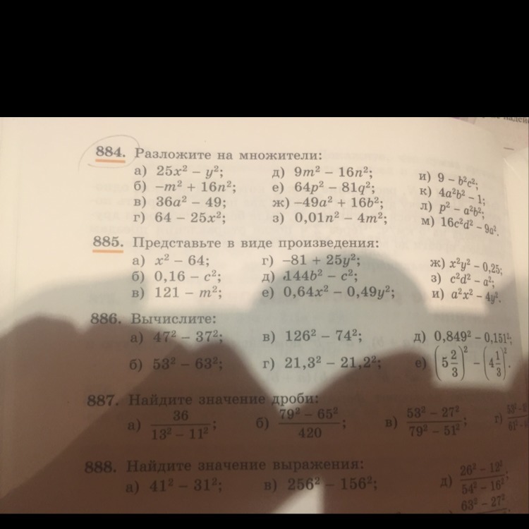 г) 64-25x в квадрате= 8 в квадрате - (5x) в квадрате= (8-5x)(8+5x)