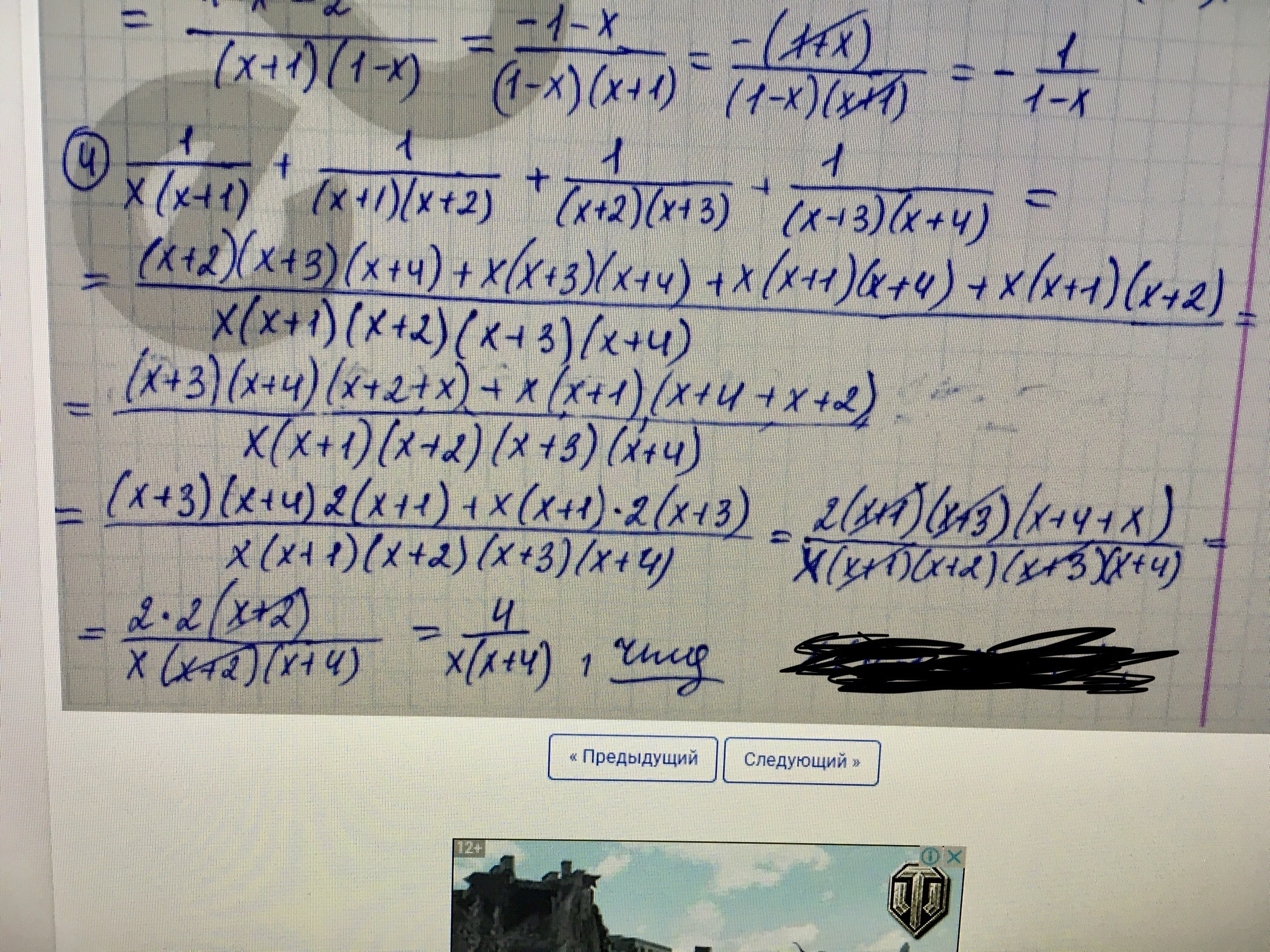 Пожалуйста объясните доказательство тождества: "почему в третьем и четвёртом действии числитель так сокращается". P.s. всех спрашивал, никто не знает, даю 30 баллов.