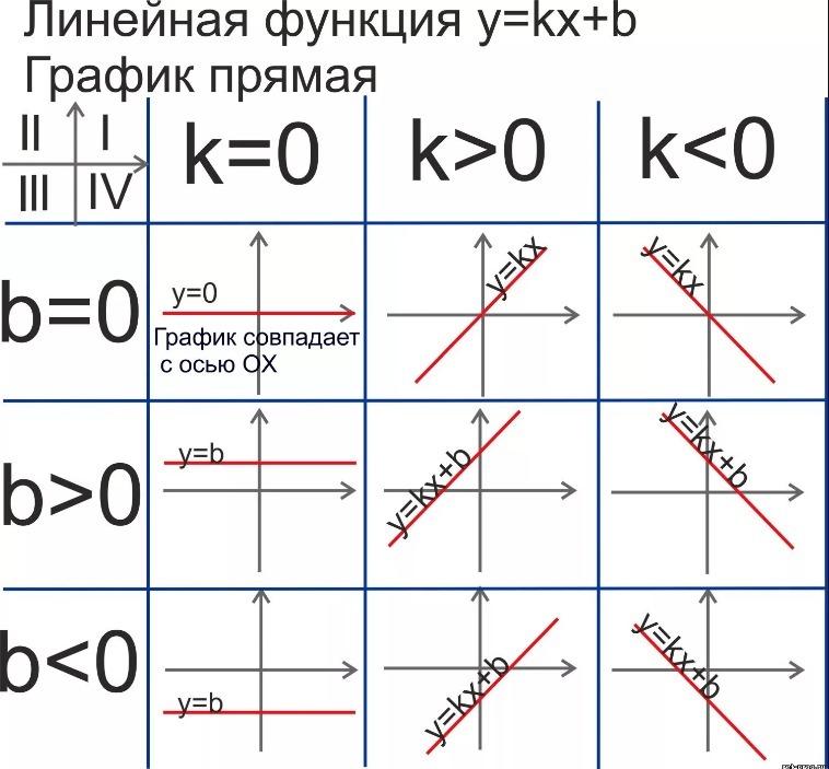 к>0 - это когда прямая возрастает, то есть поднимается слева направо вверх и проходит через 1 и 3 коорд.углы