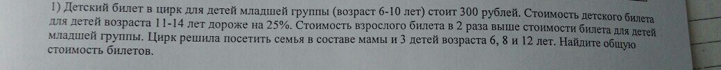 1) 300 * 25% = 300 * 25/100 = 75 руб настолько дороже стоимость билета для детей 11-14 лет