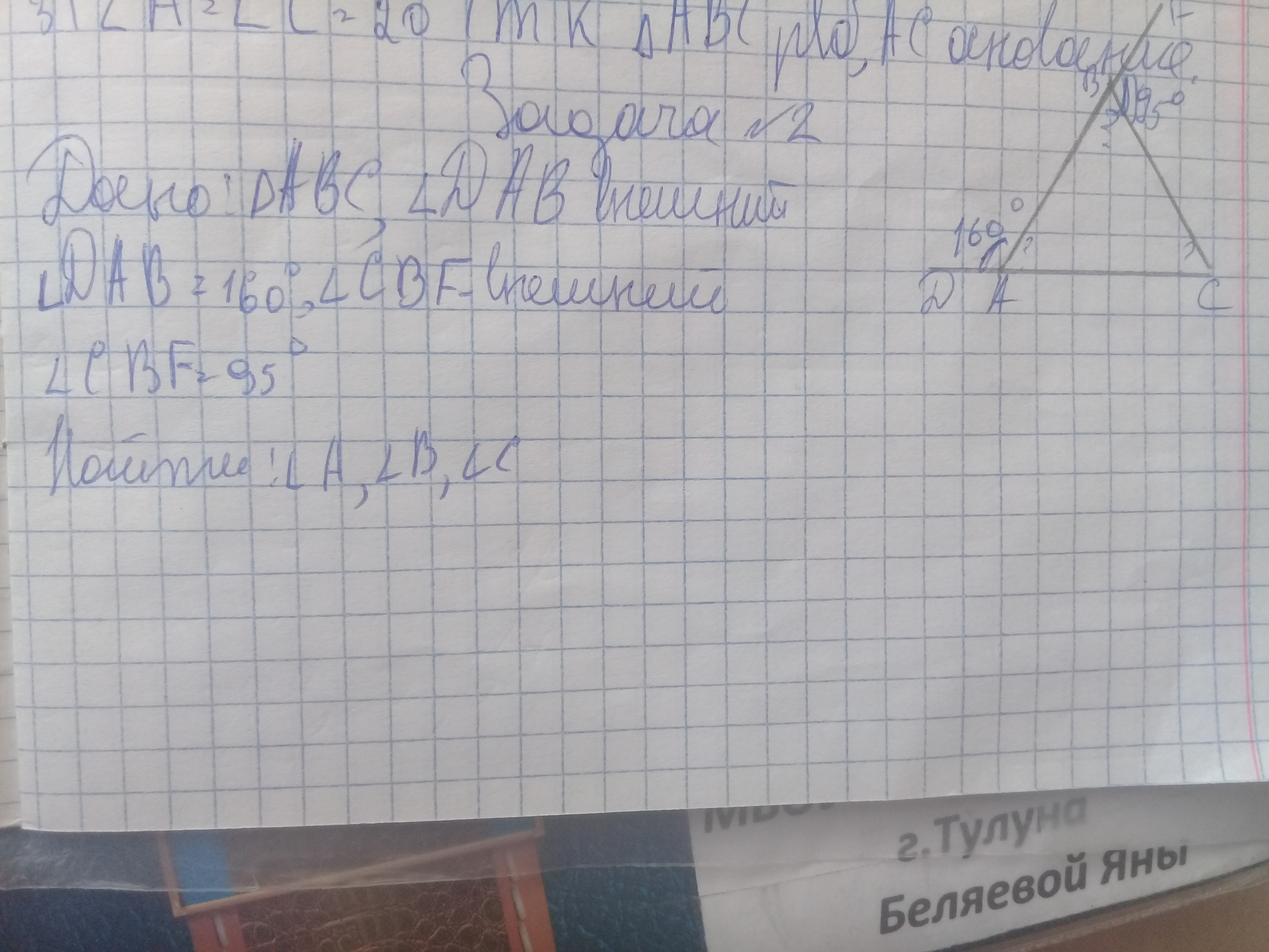 А=180°-160°=20°