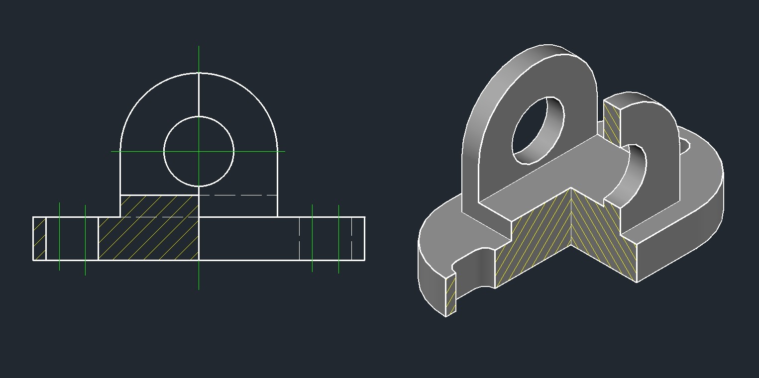 Замените вид спереди изображением, содержащим соединение половины вида с половиной разреза рис 178