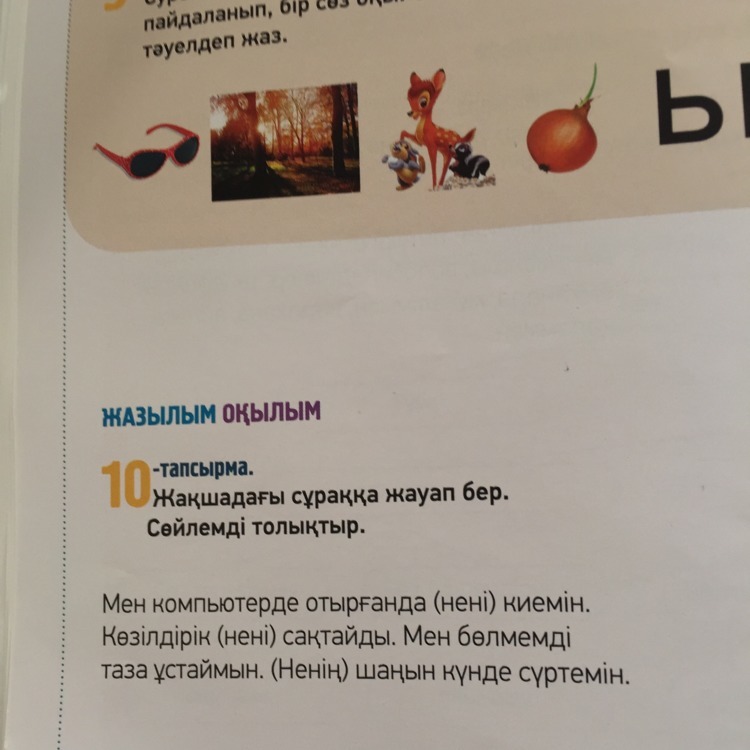 Мен компьютерде отырғанда көзілдірік киемін. Көзілдірік көзді сақтайды. Мен бөлмемді таза ұстаймын. Бөлмемнің шаңын күнде сүртемін.