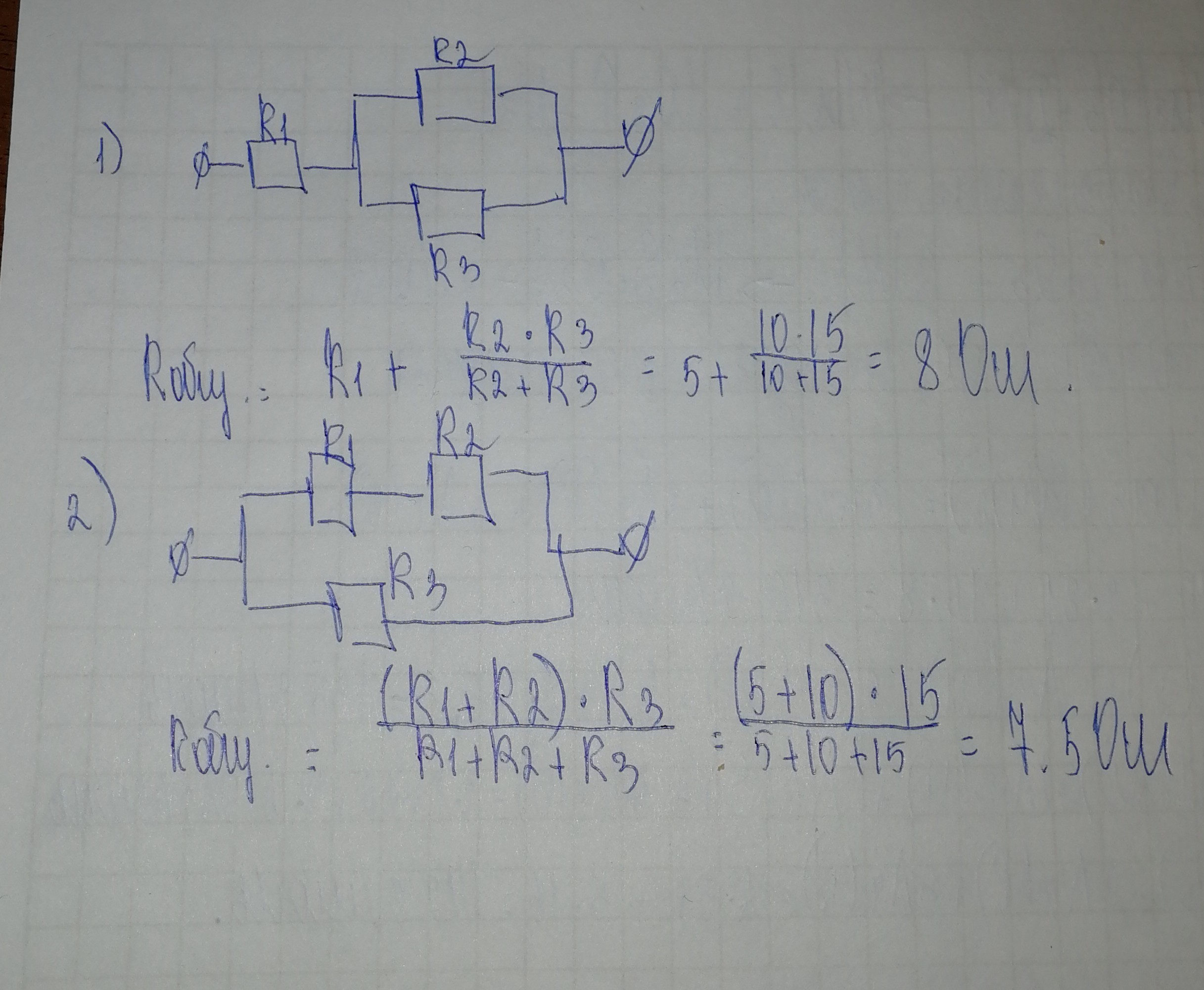 при смешанном соединений проводников R1=5 R2=10 R3=15