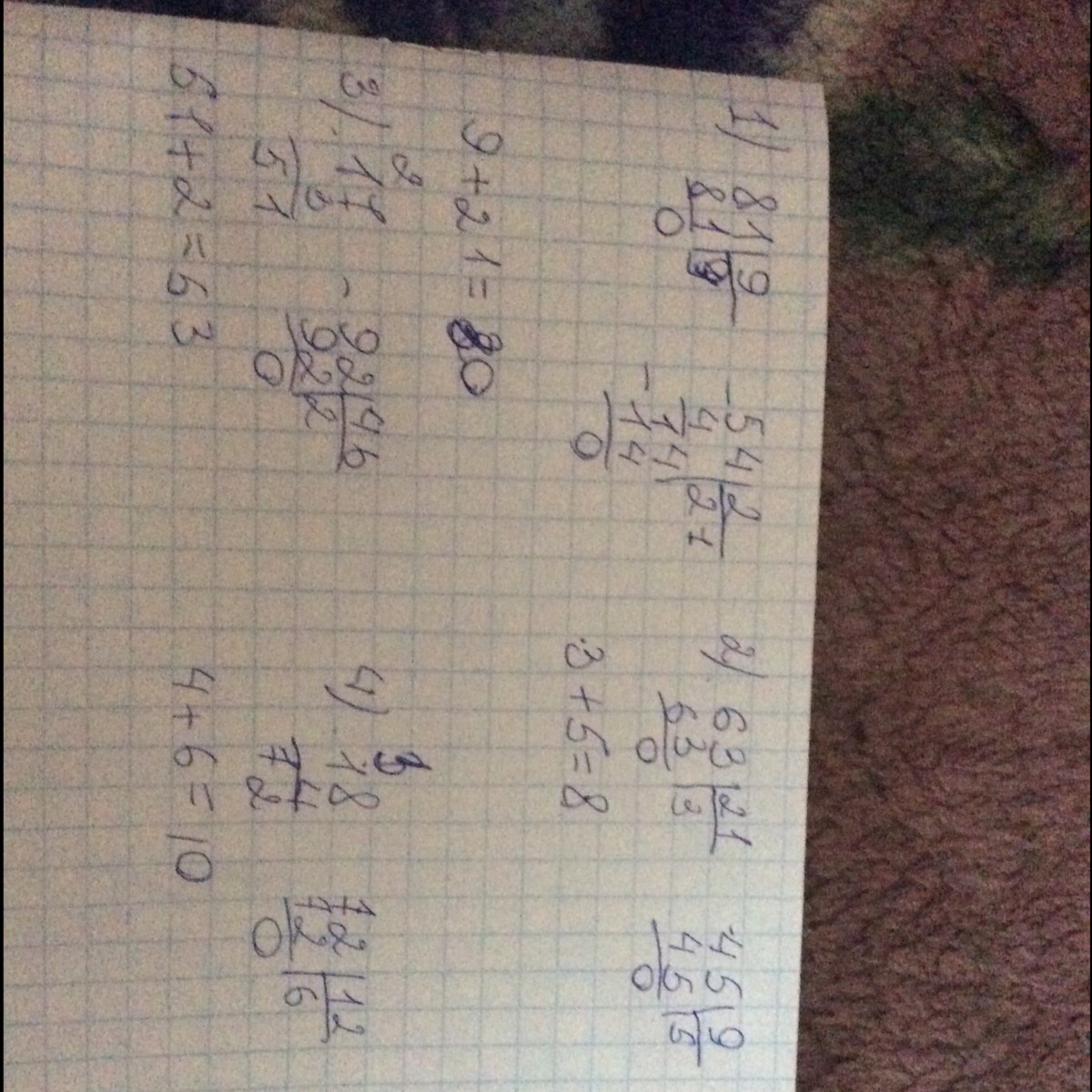 3)51-2=49,4)72-6=66