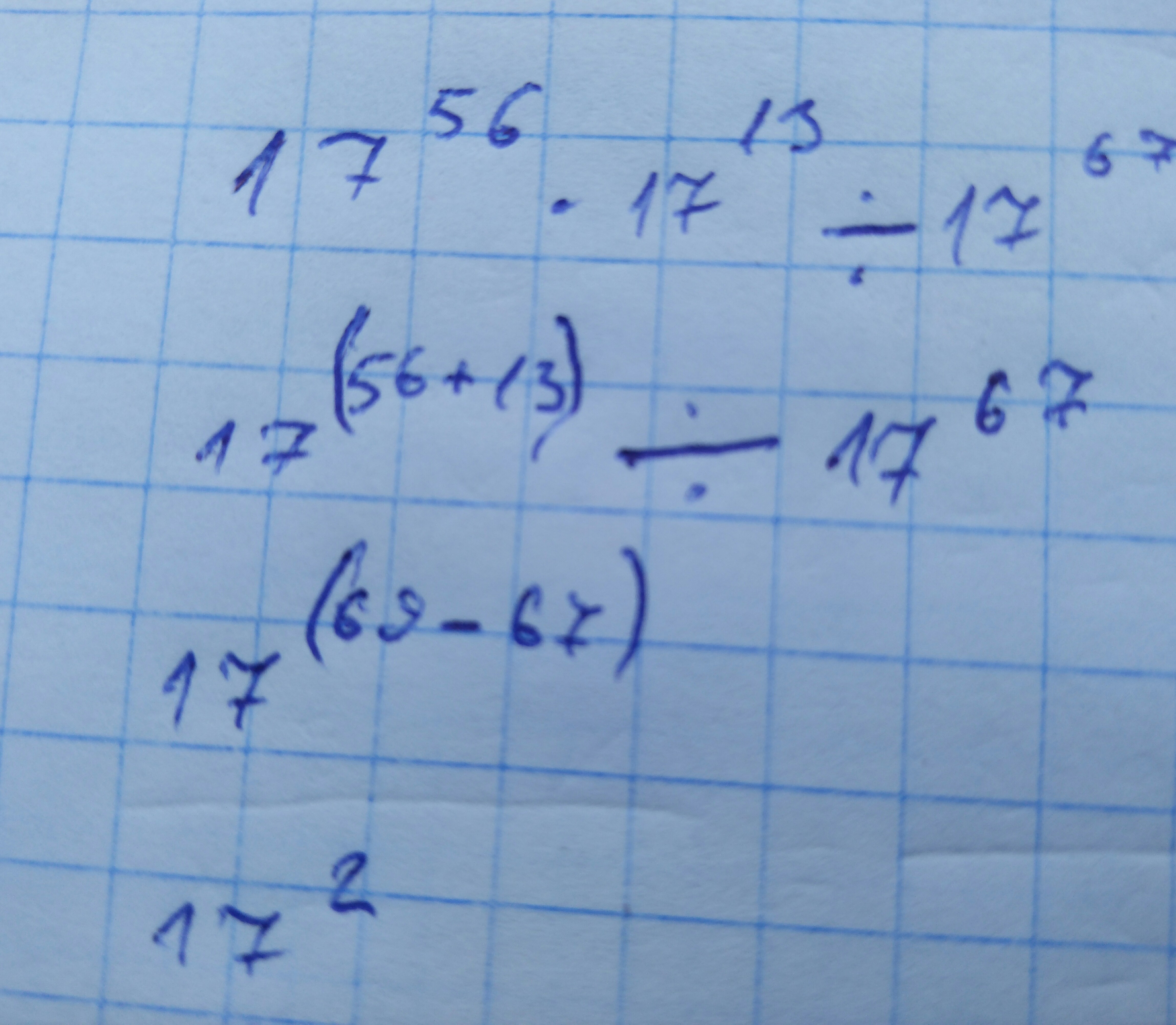 при умножении степени складываются, а при делении вычитаются. ответ 17²=289