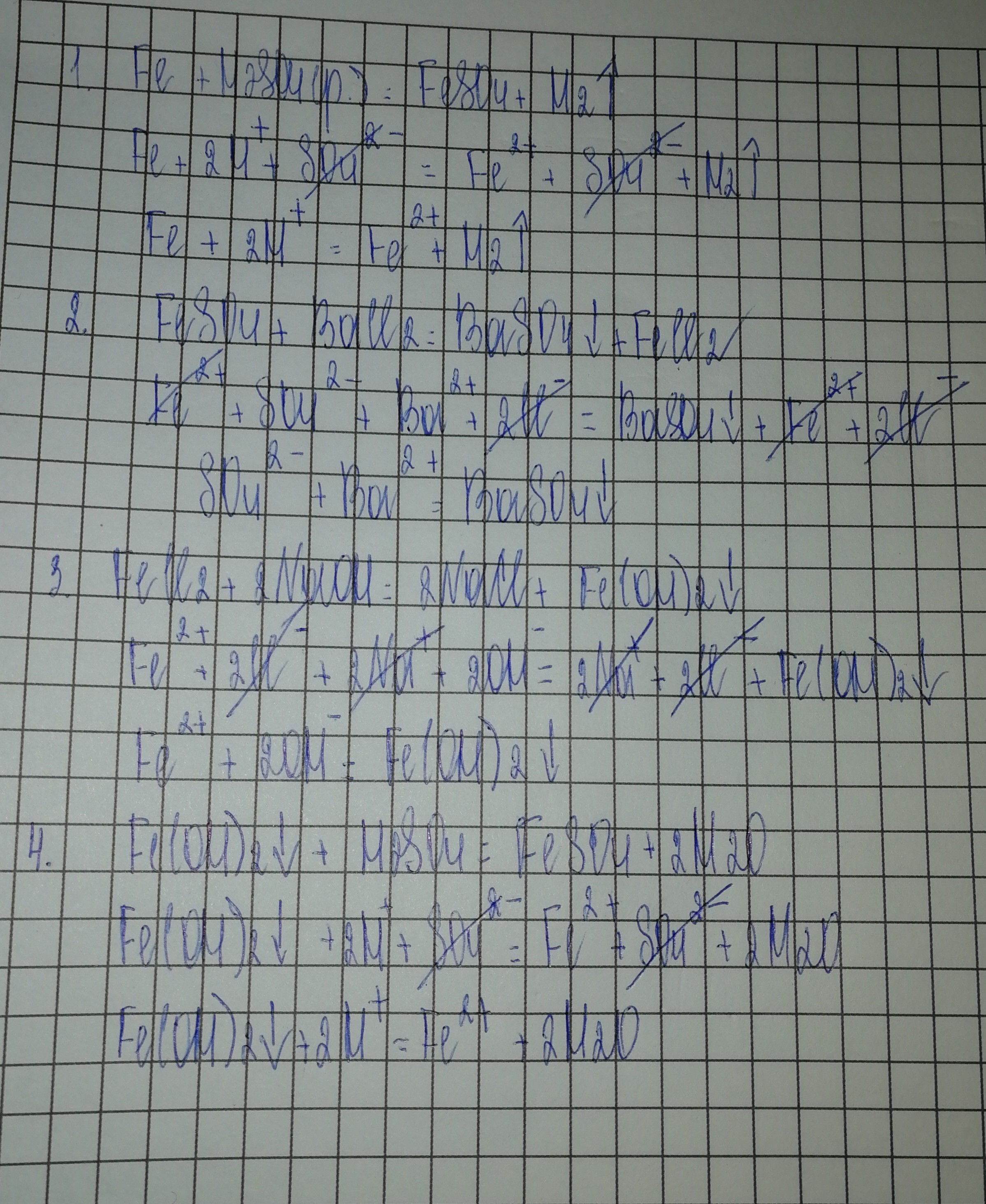Fe +2H⁺+SO₄²⁻ = Fe²⁺+SO₄²⁻+H₂↑