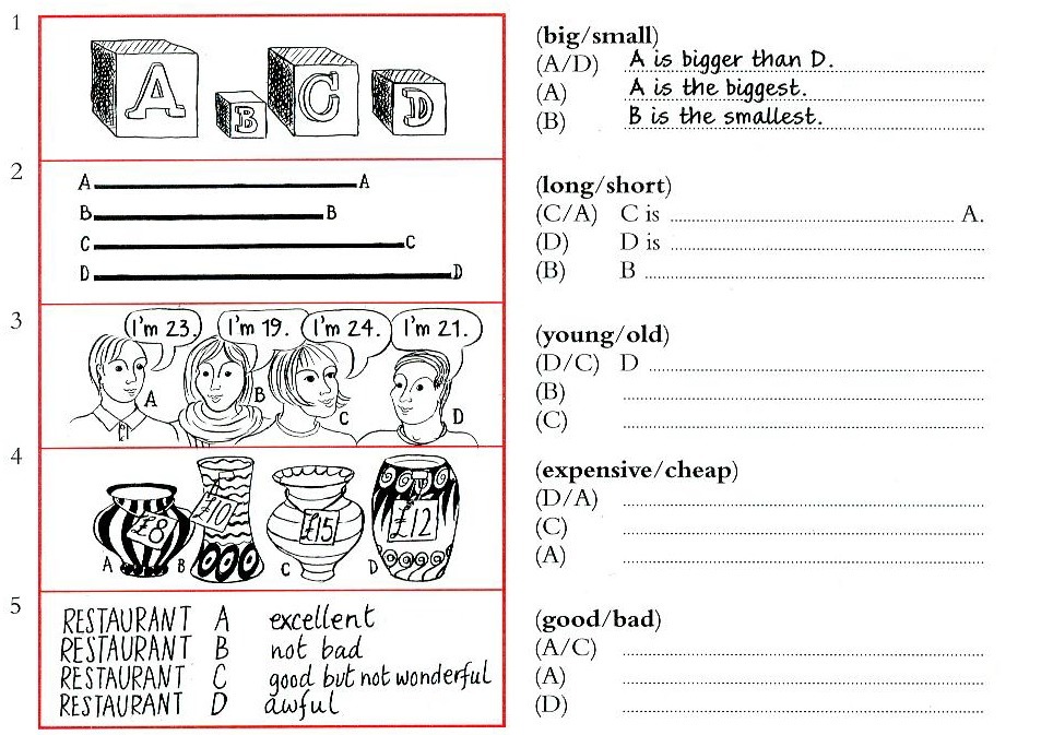 Write sentences with comparatives and superlatives. The first example is done for you.