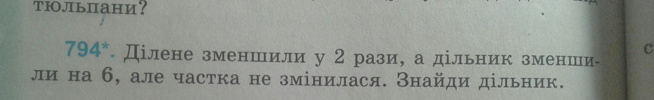 Пусть х - делимое, у - делитель. После преобразования делимое стало равно 0,5х, а делитель (у-6). Частное в обоих случаях одно и то же. Получаем уравнение