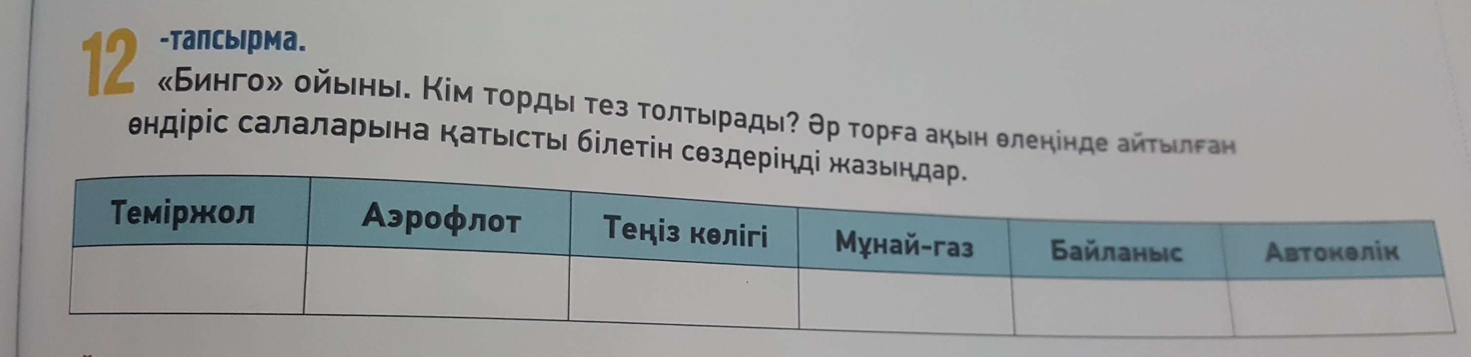 "бинго" ойыны. Кім торды тез толтырады?əр торға ақын өлеңінде айтылған өндіріс салаларына қатысты білетін сөздеріңді дазыңдар.