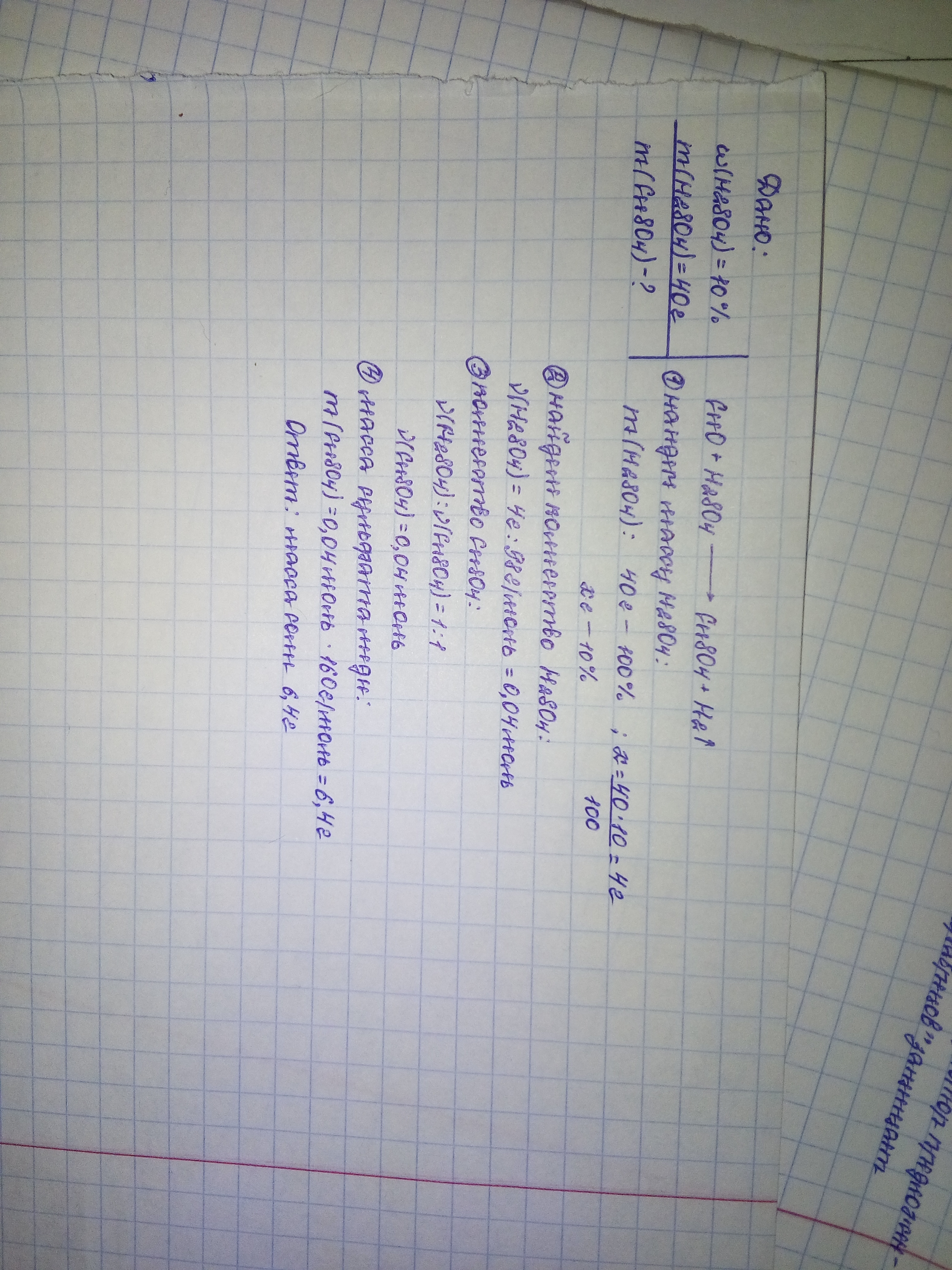 Вычислите массу соли полученной при взаимодействии оксида меди (2) с 10% раствором серной кислоты массой 40 г. РЕШИТЕ СРОЧНО, С ДАНО