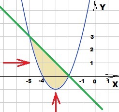 по оси OY: от параболы y=x²+6x+8 до прямой y=-x-2