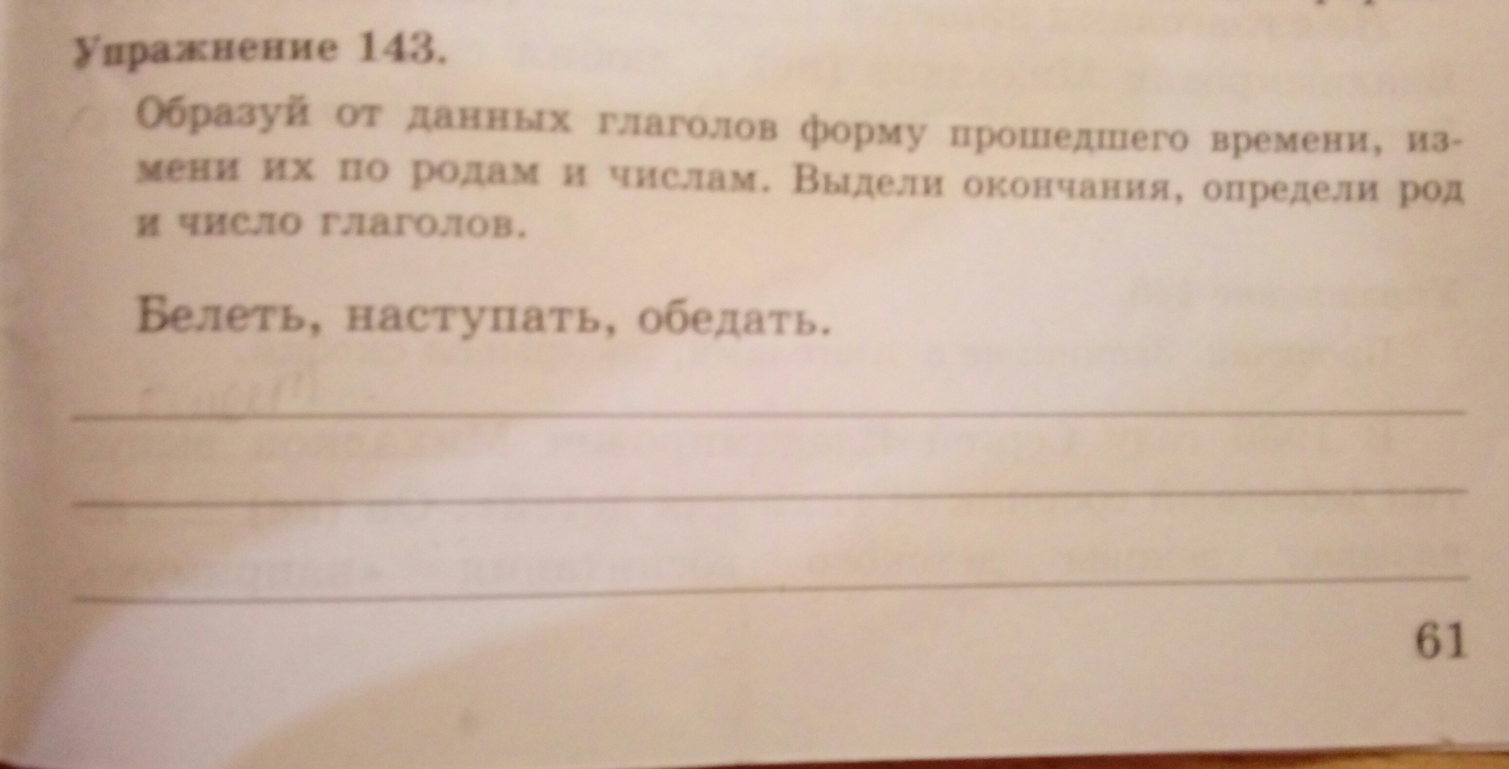 образуй от данных глаголов форму прошедшего времени,измени их по родам и числам. Выдели окончания,опредили род и число глаголов