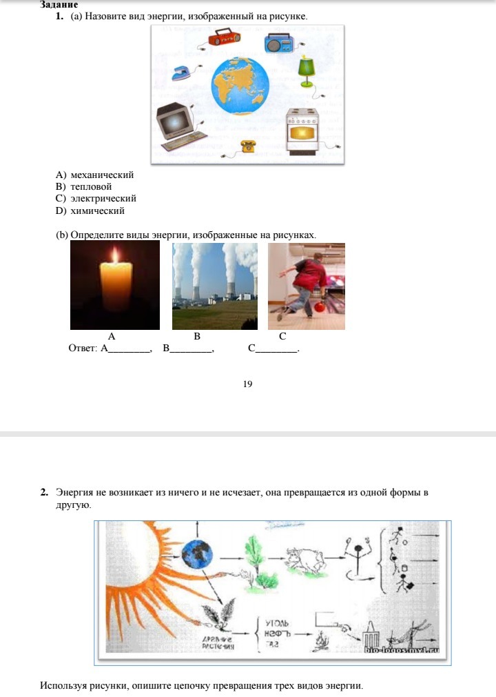 2. Энергия не возникает из ничего и не исчезает, она превращается из одной формы в другую: Солнце излучает огромное количество световой и тепловой энергии, часть которой передается на Землю её обитателям и растениям. В растениях солнечная энергия превращается в химическую энергию. Животные, человек и другие обитатели нашей планеты "превращают" химическую энергию в механическую. Механическая, а точнее кинетическая энергия воды переходит в электрическую. Часть растений и животных, погибая оказываются в земле и под воздействием химической энергии превращаются в природные ресурсы, которые можно использовать в деятельности человека.