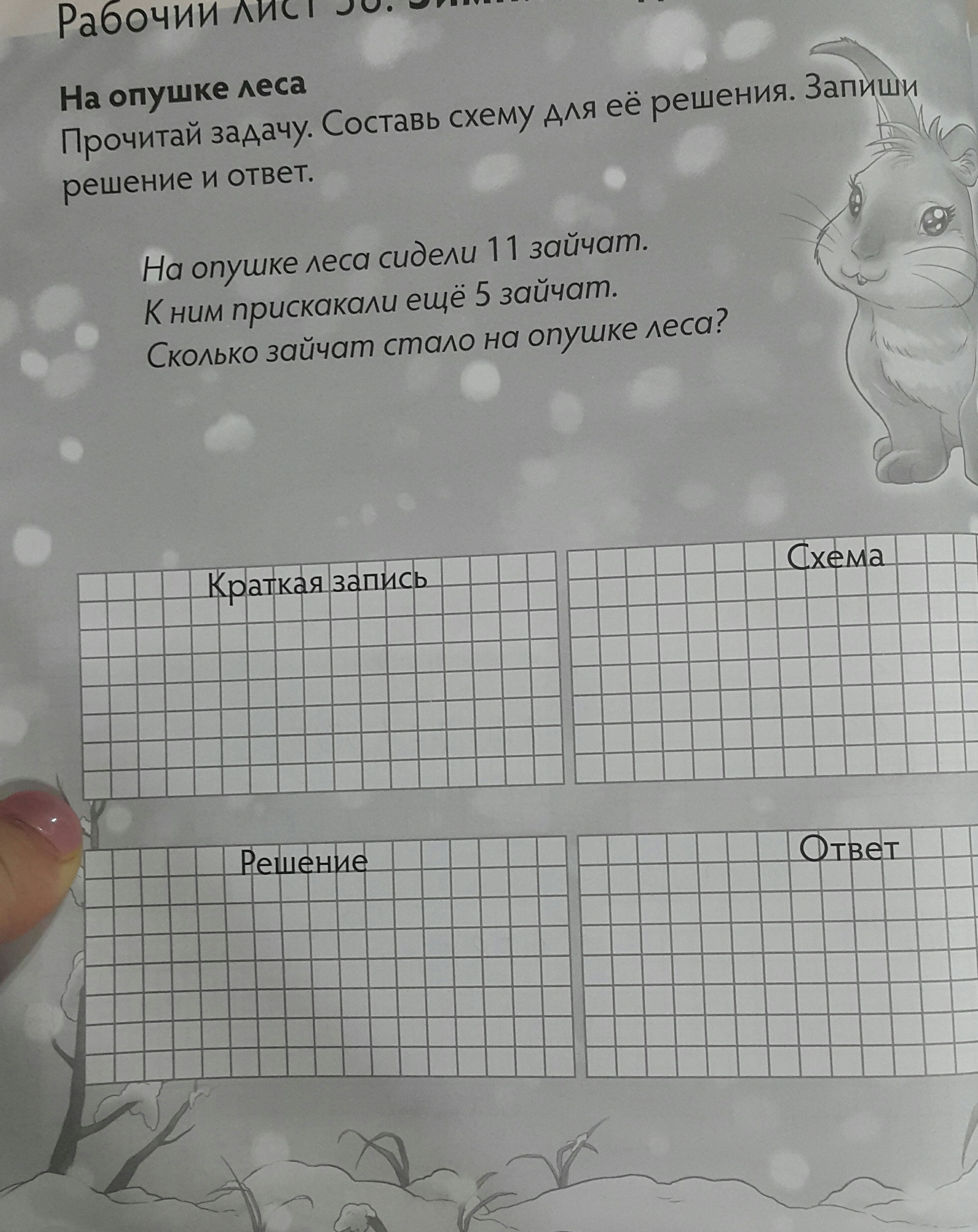 На одной части полоски нарисуй полу-овал и напиши 11 зайчат.
